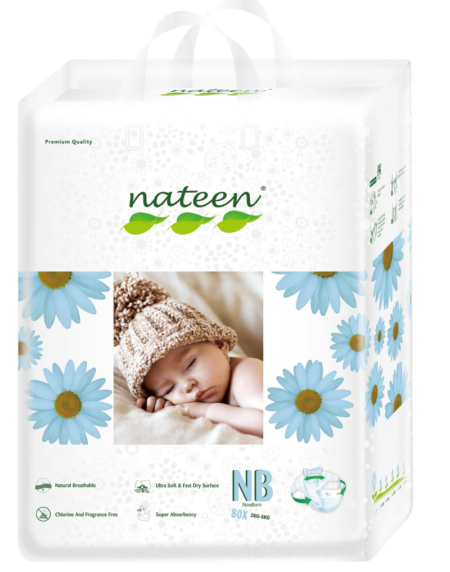 NATEEN PREMIUM LINE NEW BORN (Size 1), 80 BUC - Scutece ecologice pentru bebeluși nou-născuți (3-5kg) - Protecție împotriva scurgerilor, scutece de unică folosință super absorbante, hipoalergenice cu fixare confortabila 3D Flex&Fit