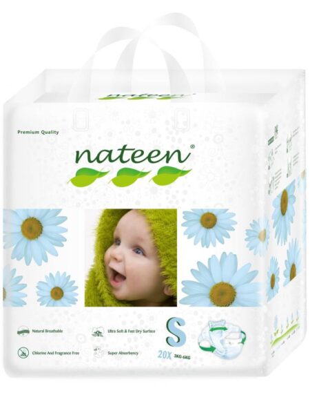 NATEEN PREMIUM LINE SMALL (Size 2), 20 BUC - scutece ecologice pentru bebeluși, 4-6 kg - Protecție împotriva scurgerilor, scutece de unică folosință super absorbante, hipoalergenice cu fixare confortabila3D Flex&Fit