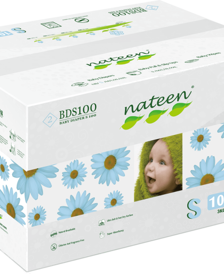 NATEEN PREMIUM LINE SMALL (Size 2), 100 BUC - scutece ecologice pentru bebeluși, 4-6 kg - Protecție împotriva scurgerilor, scutece de unică folosință super absorbante, hipoalergenice cu fixare confortabila 3D Flex&Fit