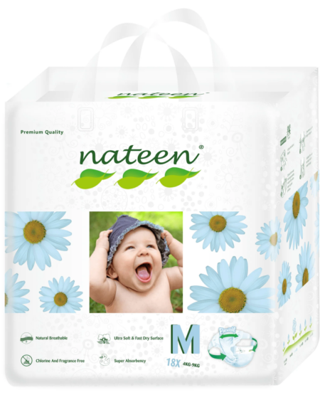 NATEEN PREMIUM LINE MEDIUM (Size 3), 18 BUC - scutece ecologice pentru bebeluși, 6-10 kg - Protecție împotriva scurgerilor, scutece de unică folosință super absorbante, hipoalergenice cu fixare confortabila 3D Flex&Fit